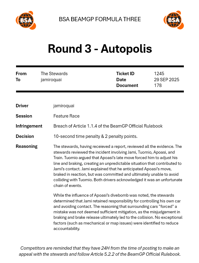 | 2025-09-27 | OW | 25 S4 W4 Formula 3 World Championship | DNF |