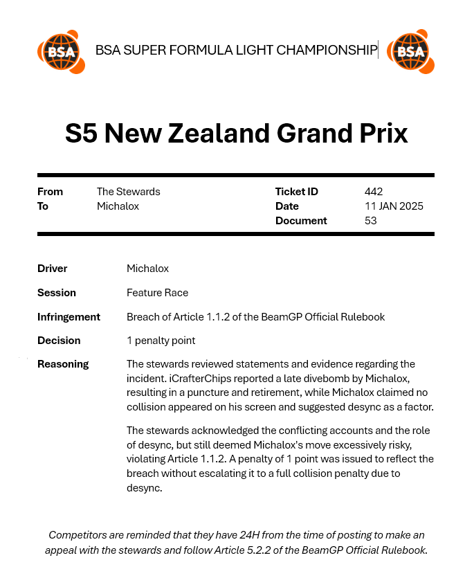 | 2025-11-12 | SC | 24 S2 W10 GT4 | DNF |