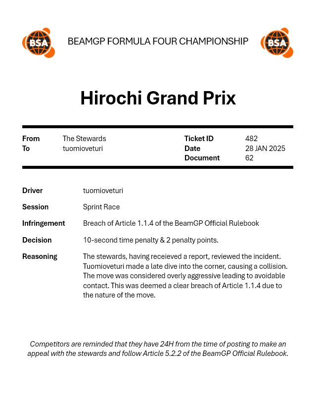 | 2025-11-13 | OW | 25 S4 W7 Formula 3 World Championship | P1 |