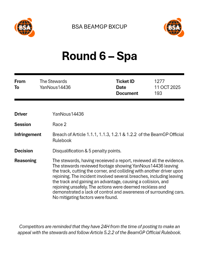| 2025-11-13 | OW | 25 S4 W9 BeamGP Formula 4 Europe | P9 |