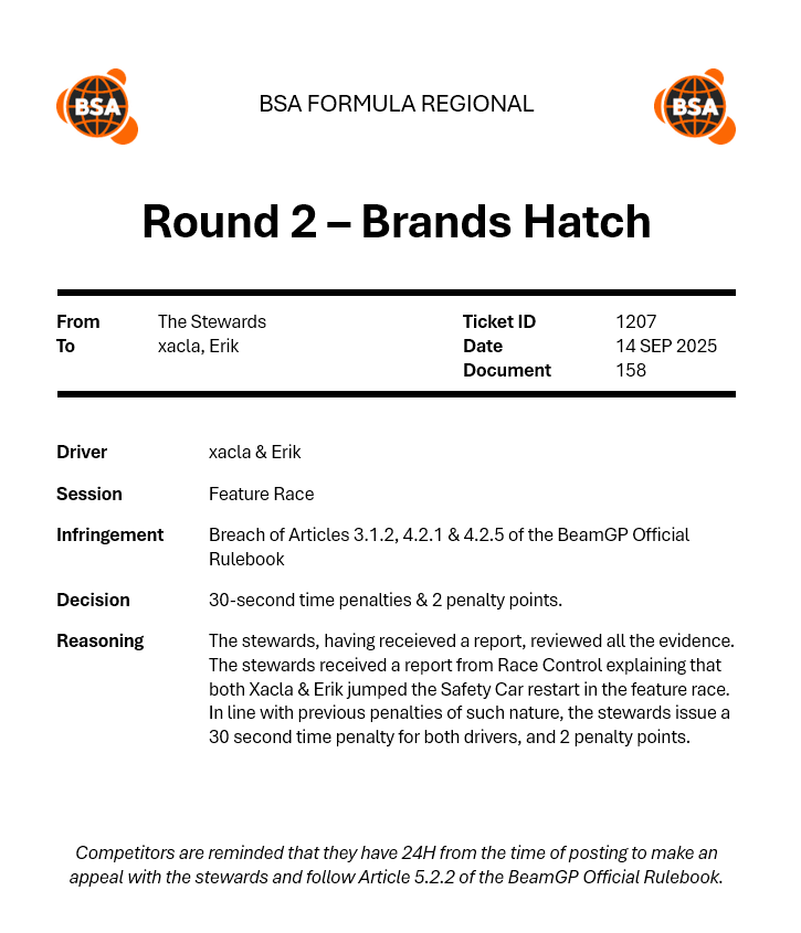 | 2025-09-14 | OW | 25 S4 W2 BeamGP Formula 4 Europe | P2 |