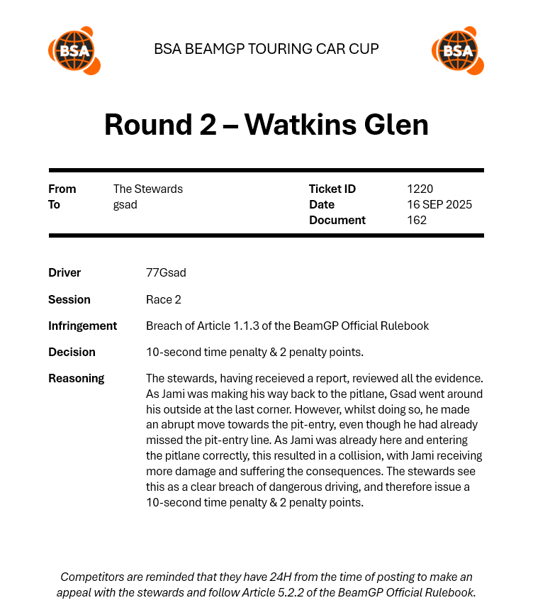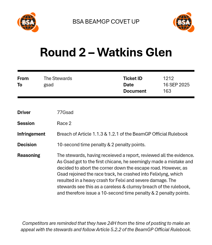 | 2025-11-13 | SC | 25 S4 W2 COC (Race) | P1 |