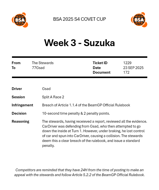 | 2026-01-24 | OW | 26 S1 W4 BeamGP Formula 4 Europe (Qualifying) | P1 |